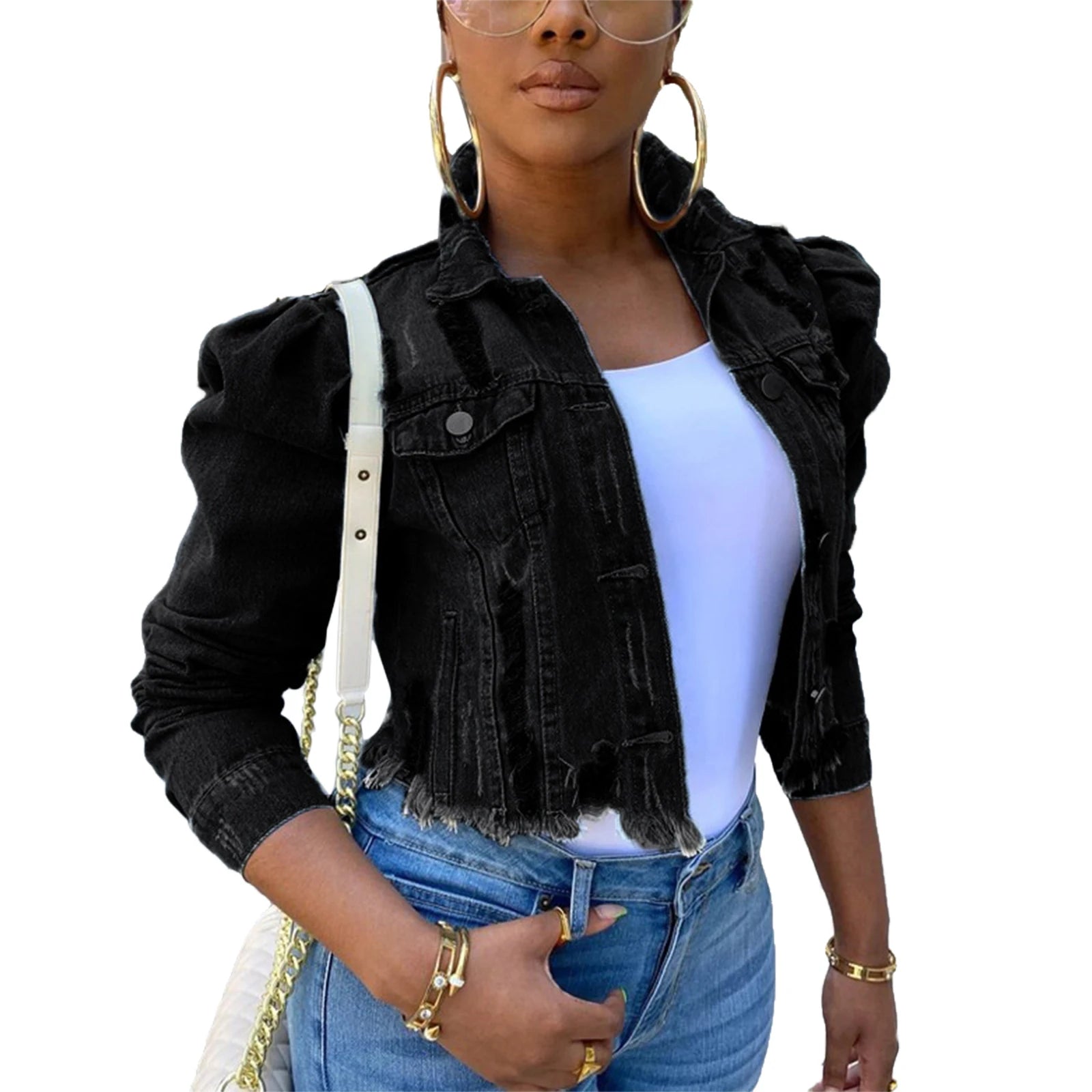מעיל ג'ינס קרעים